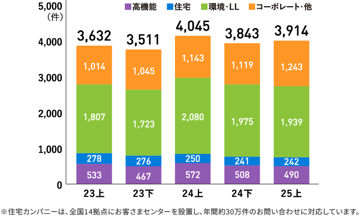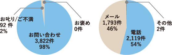 2025年度上期のお問い合わせ件数は、3,914件となりました(前年同期比で131件の減)。電話でのお問い合わせは減少傾向が続き、メールでのお問い合わせ比率が直近5年間で35%から46%へと高まってきています。