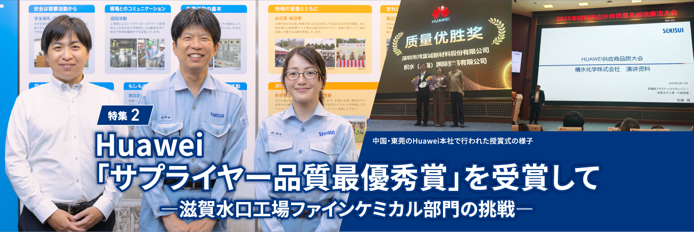 2025年5月、積水化学グループが、Huaweiより「サプライヤー品質最優秀賞」を授与されました。本賞は、積水化学グループの開発・製造、そして品質保証部門が一体となって成し遂げた大きな成果といえるでしょう。今回は、Huaweiへ納入している代表的な製品の一つである、「フォトレックB」の品質保証の取り組みをご紹介します。